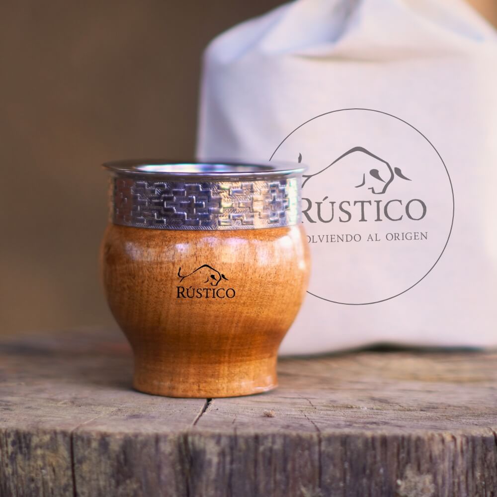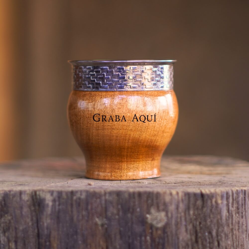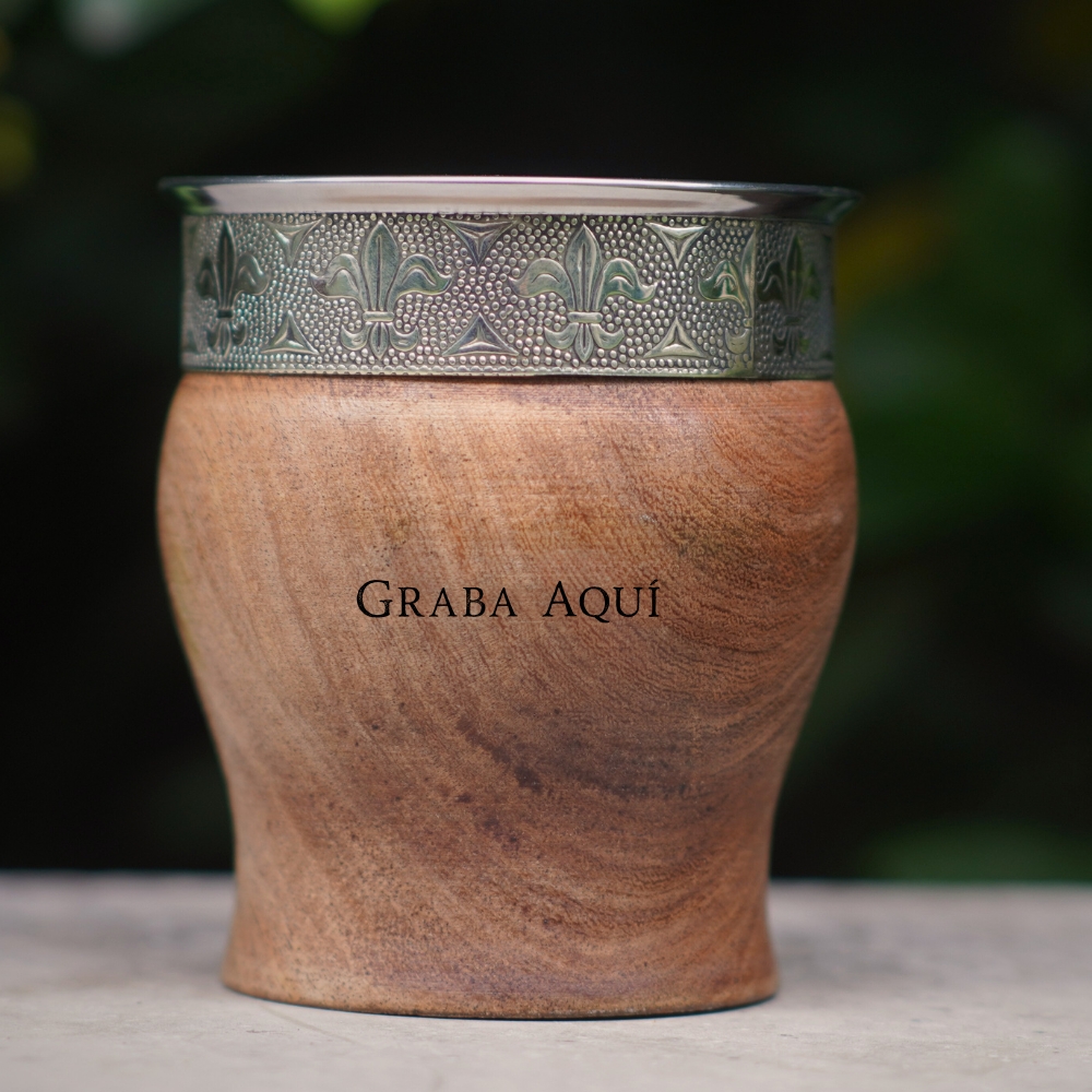 Mate de madera algarrobo, virola con detalles artesanales de alta calidad.