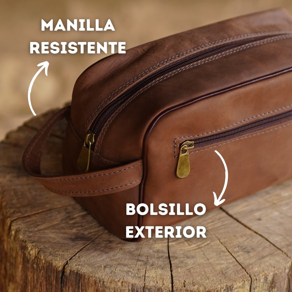 Neceser de cuero espacioso, ideal para viajes largos