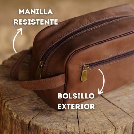 Neceser de cuero compacto, ideal para viajes cortos y organización.
