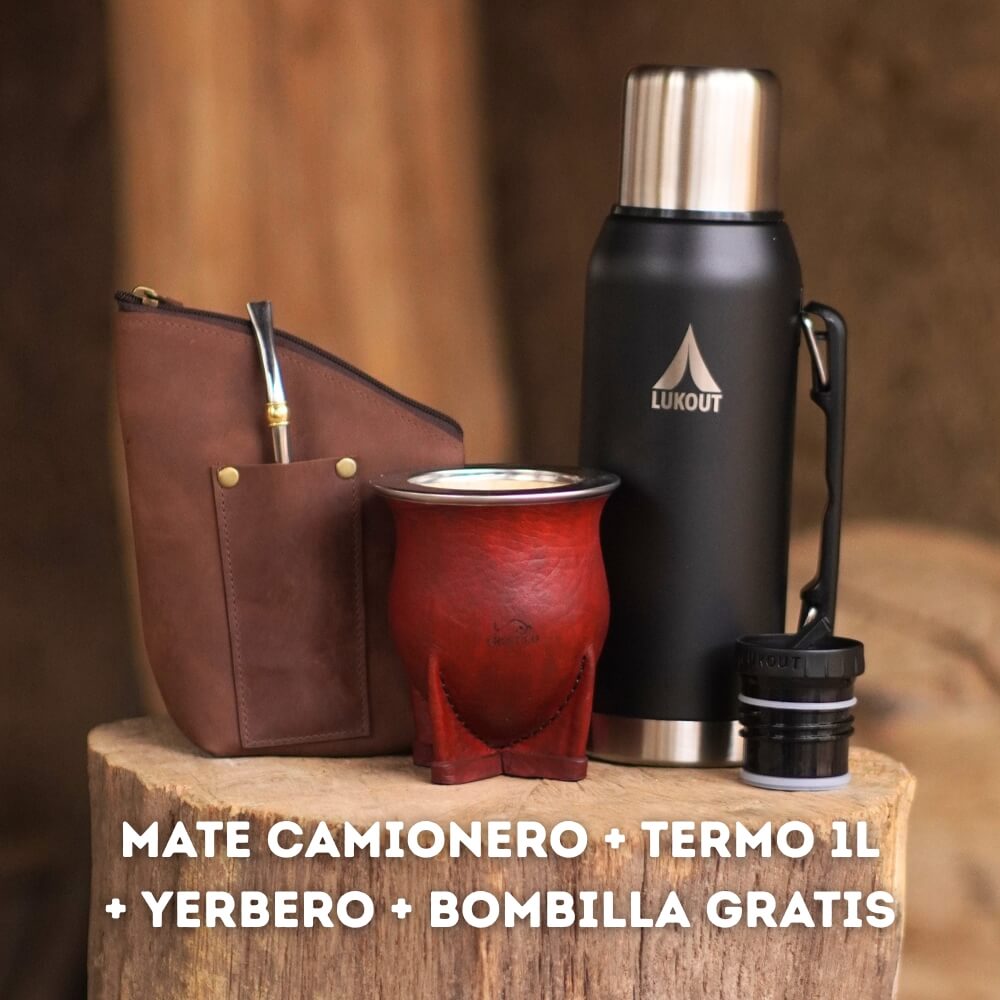 Mate Camionero + Termo Lukout 1L + Yerbero + Bombilla Pico de Loro GRATIS